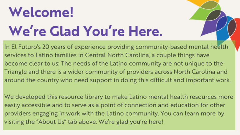 In addition to this resource library, El Futuro offers live programming every month for mental health providers serving the Latino community. Most of the educational opportunities we offer are free and you can receive continuing education credits for attending. Some of the programming we offer includes: